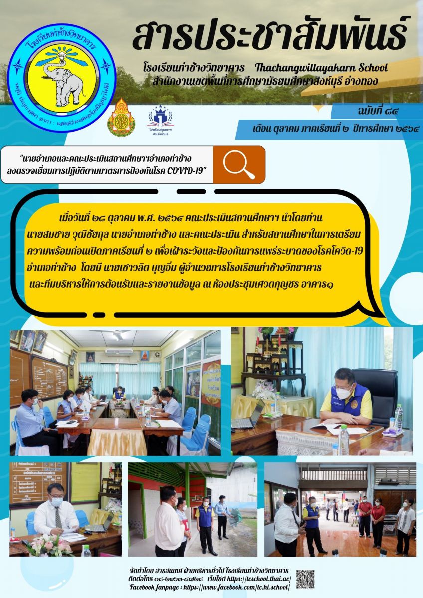 คณะประเมินสถานศึกษาอำเภอท่าช้าง ตรวจเยี่ยมการปฎิบัติตามมาตรการป้องกันโรค COVID-19